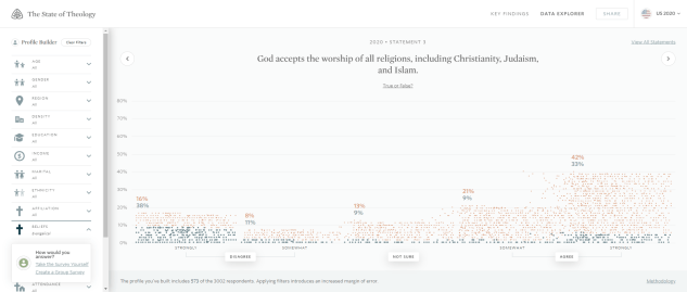 Religious pluralism may be a popular idea in America, but it has damning consequences. No one comes to the Father but through Jesus Christ, who alone is the way, the truth, and the life (John 14:6). Christians must be unyielding in proclaiming the exclusivity of Christ. By God’s grace, we hope the 2020 results from our State of Theology survey will encourage the church to stand firm for the truth of God’s Word.