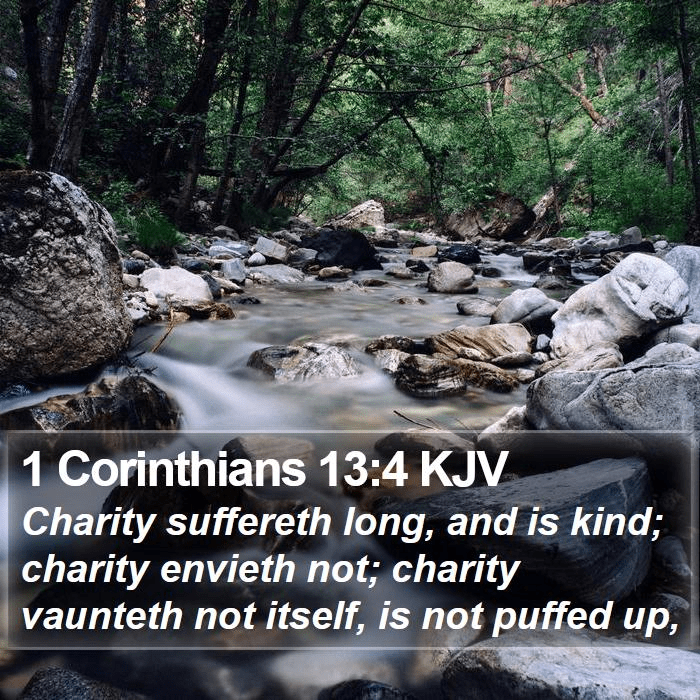 No matter the translation the implication is clear, reading verse 4 we see charity or Agape Love, is not jealous or boastful or proud (NLT). Many folks seem to need reassurance that they are doing good works ( a job well done) feeding their egos. When they can’t get it from others, (which is biblical) they will proclaim their own good works (unbiblical). I have even been told Galatians 6:4 is the scripture text that allows this, NOT! Galatians 6 is about the restoration of fellow believers not about individual pride.