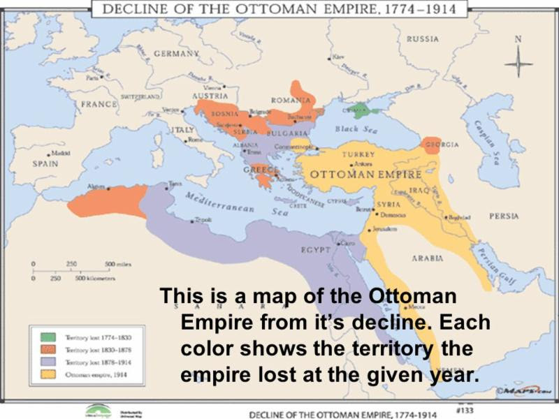 In the course of the 1800s, the Turkish Ottoman Empire became weaker. Countries broke away or were claimed by colonizing European powers.