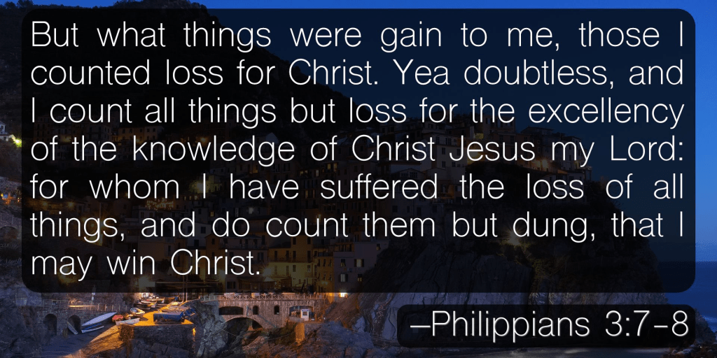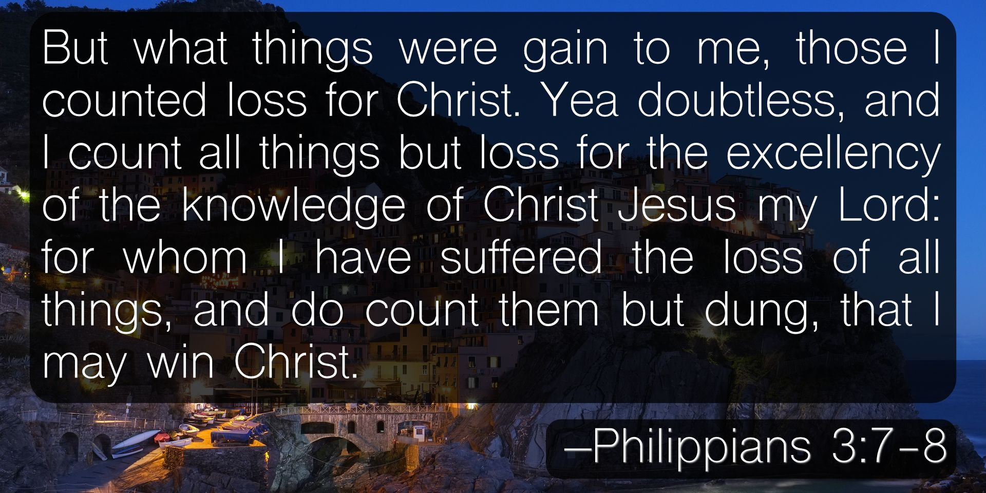 - In fact, those losses are but dung (manure) in comparison to the gain of Christ.
