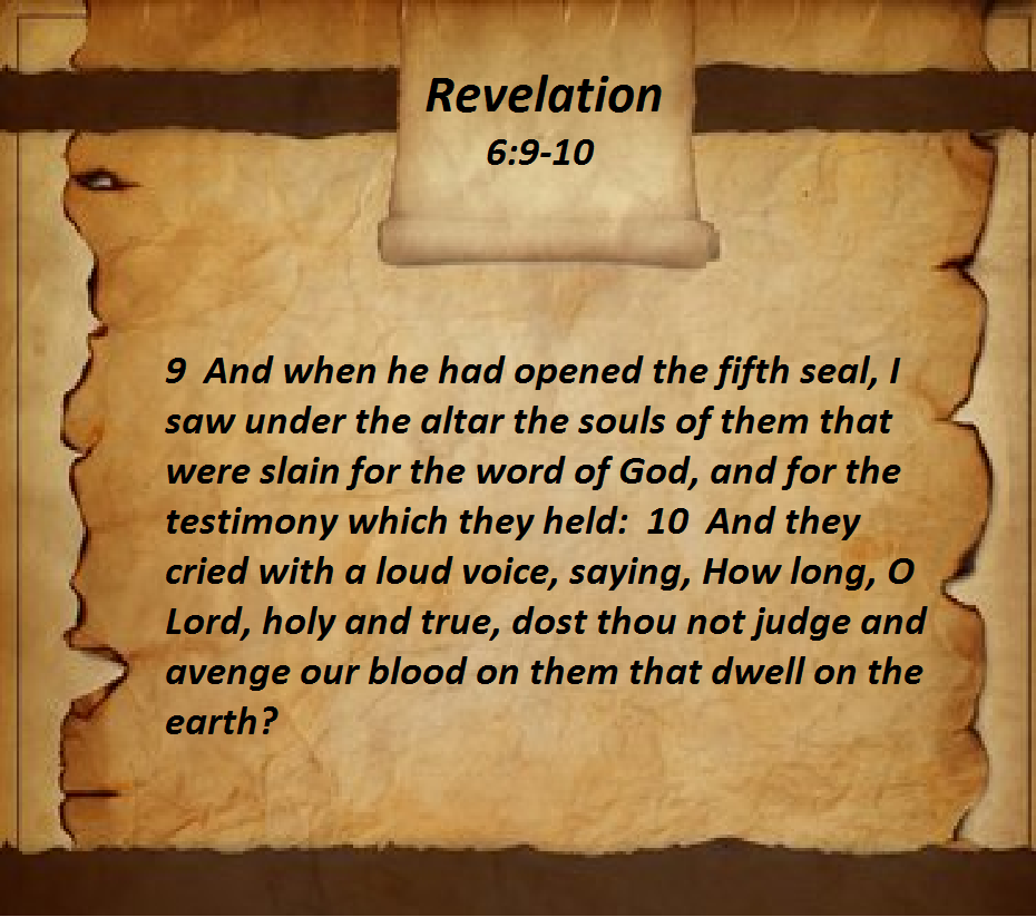The other thing to remember is that victory is assured as our main text implies. Here again, Matthew Henry’s Concise Commentary says: 6:9-11 The sight the apostle beheld at the opening of the fifth seal was very affecting. He saw the souls of the martyrs under the altar; at the foot of the altar in heaven, at the feet of Christ. Persecutors can only kill the body; after that, there is no more they can do; the soul lives. God has provided a good place in the better world, for those who are faithful unto death. It is not their own death, but the sacrifice of Christ, that gives them entrance into heaven. The cause in which they suffered, was for the word of God; the best any man can lay down his life for; faith in God’s word, and the unshaken confession of that faith. They commit their cause to Him to whom vengeance belongs. The Lord is the comforter of his afflicted servants, and precious is their blood in his sight. As the measure of the sin of persecutors is filling up, so is the number of the persecuted, martyred servants of Christ. When this is fulfilled, God will send tribulation to those who trouble them, and unbroken happiness and rest to those that are troubled.