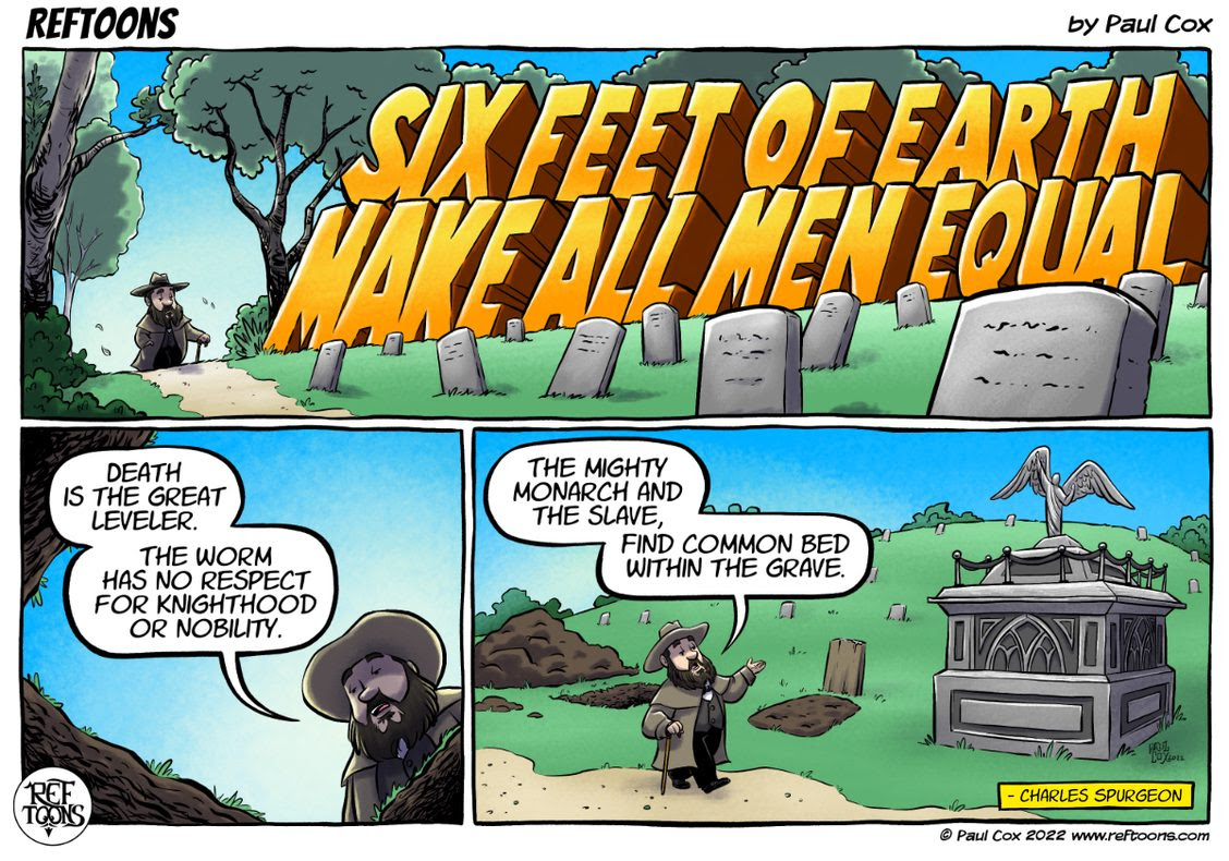 “Six feet of earth make all men equal. Death is the great leveler. The worm has no respect for knighthood or nobility. The mighty monarch and the slave, find common bed within the grave.” – Charles Spurgeon