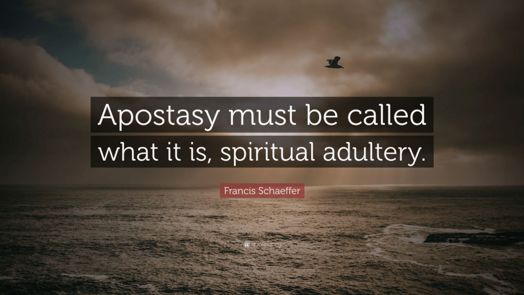 Compare to the OT Covenant which was with the nation of Israel, the NT covenant is with Individuals. God sent His son as a propitiation of sin for His chosen people (individuals both Jew and Gentile). Christ is the Bridegroom and the “church” made up of redeemed individuals His Bride. Apostasy occurs when individuals lust after (worship) something greater than Christ. I love the following quote: