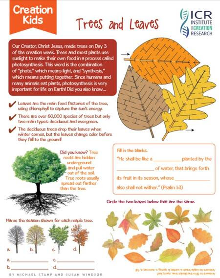 TREES AND LEAVES: CREATION KIDS ACTIVITY PAGE