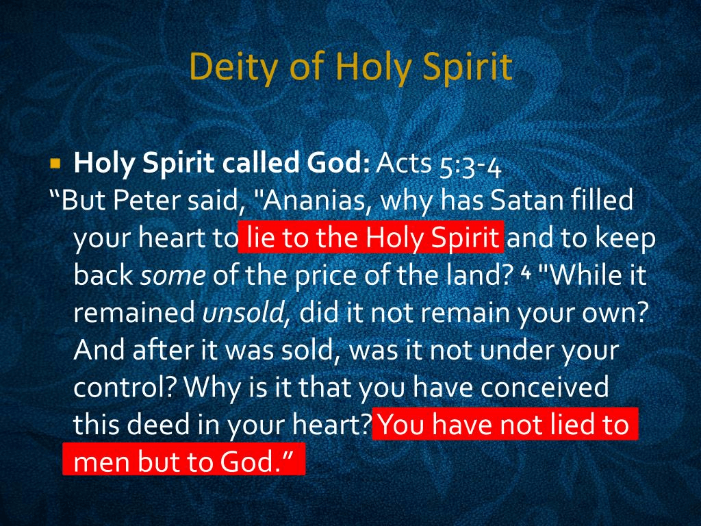 - The Holy Spirit is part of the Triune God (1 John 1:7)
