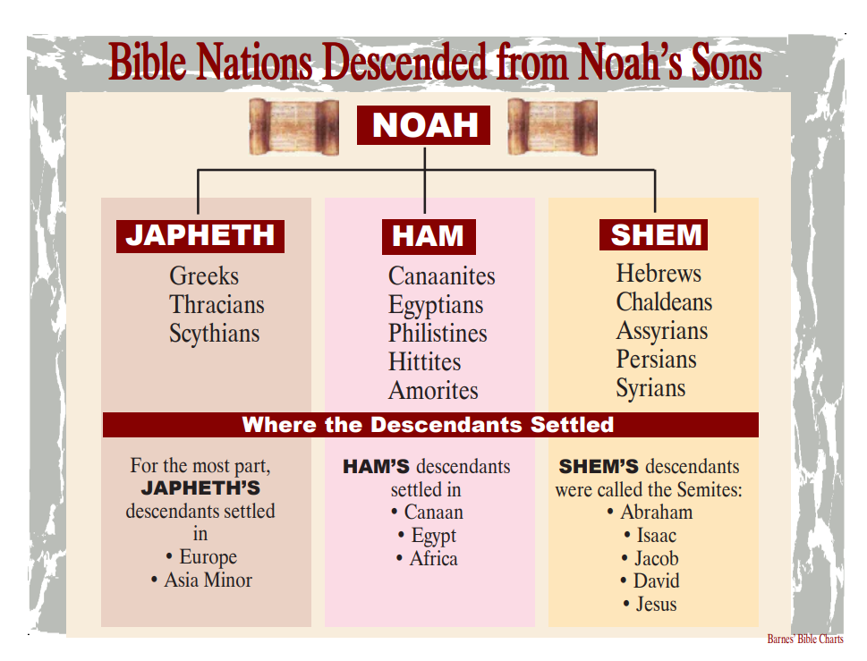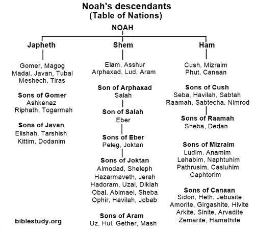 The descendants of Ham (v.6-20) are key figures in the rest of the Bible. Ham’s descendants settled in Egypt. Ham’s grandson Nimrod (though Cush) forms the nations of Babylon and Assyria, both enemies of Israel. And the descendants of Ham’s son Canaan will eventually be (mostly) driven from the Promised Land by the Israelites.