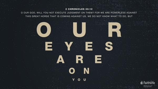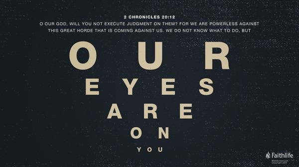 Whenever there is danger or confusion about which we are unsure how to proceed we need to be like Jehoshaphat and focus our prayers and eyes on God.
