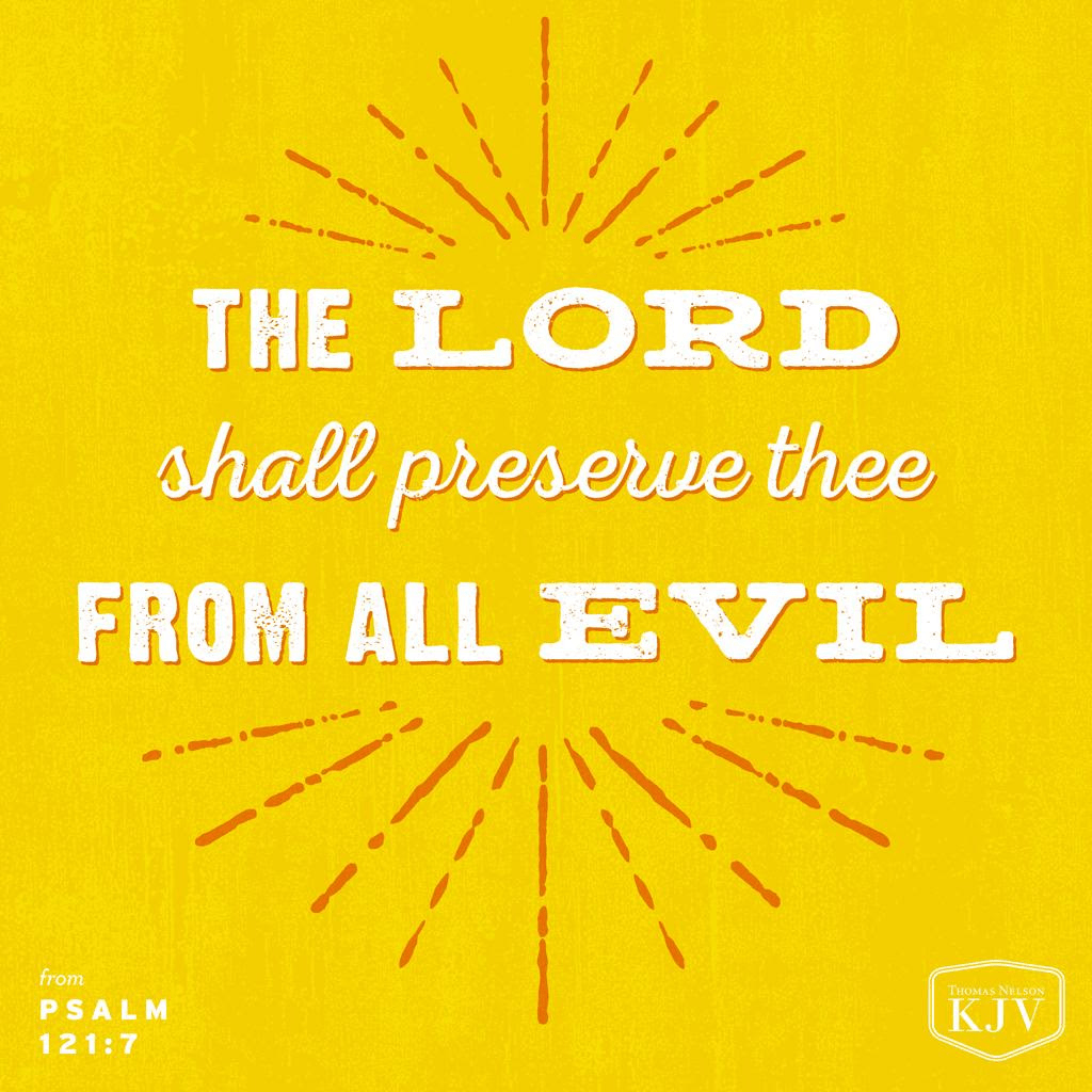 Thee Lord shall preserve them from all evil,…. The Word of the Lord, as the Targum. Not from the evil of affliction, though from that as a penal evil; or as a real one, it being made to work for good: but from the evil of sin; not from the being or commission of it; but from its dominion and damning power, or from a final and total falling away by it: and from the evil of the world; not from tribulation in it, nor from the reproach or persecution of it; but from the wickedness and lusts that are in it, and from the wicked men of it, their power, rage, and fury: and from the evil one, Satan; not from his temptations, but from sinking under them, and perishing by them; see John 17:12;