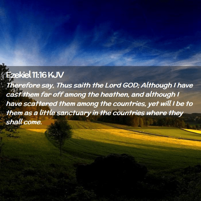 We see that God even here claims some place for sinners in the Church, against whom he had exerised the rigour of his judgment. He says, by way of concession, that they were cast away and dispersed, but he adds, that he was still with them for a sanctuary; nay, because they bore their exile calmly and with equanimity, they pronounce this to be a reason why he should pity them. For neither is their sentence so general that God overlooked his own elect. This promise then ought not to be extended to all the captives without discrimination, because we shall see that God included only a few. Without doubt then, this was a peculiar promise which God wished to be a consolation to his elect. He says, because they bore exile and dispersion with calmness and composure, therefore God would be a sanctuary to them. But this was a gracious approval of their modesty and subjection, because they not only suffered exile but also dispersion, which was more severe. For if they had all been drawn into a distant region this had been a severe trial, but still they might have united more easily, had they not been dispersed. This second punishment was the sadder to them, because they perceived in it the material for despair, as if they could never be collected together again in one body. And thus their wrestling with these temptations was a sign of no little piety; and as some of the faithful did not demonstrate their obedience at once, yet because God knows his own, (2 Tim. 2:19,) and watches for their safety, hence he here opposes to all their miseries that protection on which their safety was founded. Because, therefore, they were dispersed through the lands, hence, says he, I will be to them a small sanctuary.John Calvin and Thomas Myers, Commentary on the First Twenty Chapters of the Book of the Prophet Ezekiel, vol. 1 (Bellingham, WA: Logos Bible Software, 2010), 362–368.)