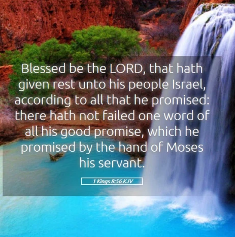 Not one word has failed of all your good promise, 1 Kings 8:56(ESV) which you have promised to David your servant and to Israel your people. 1 Kings 8:66(ESV)