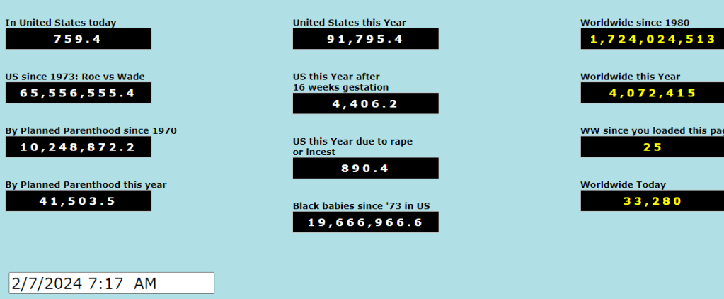 SEE THE UPDATED U.S. AND WORLDWIDE ABORTION CLOCK – HERE