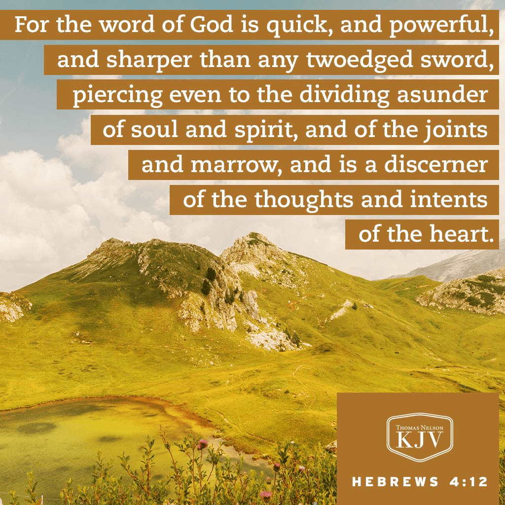 v.12 For the word of God is quick, and powerful, and is harper than any two-edged sword, piercing even to the dividing asunder of soul and spirit, and of the joints and marrow, and is a discerner of the thoughts and intents of the heart.