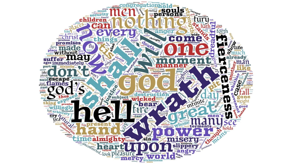 A word cloud of Jonathan Edwards’ famous sermon, “Sinners in the Hands of an Angry God.”