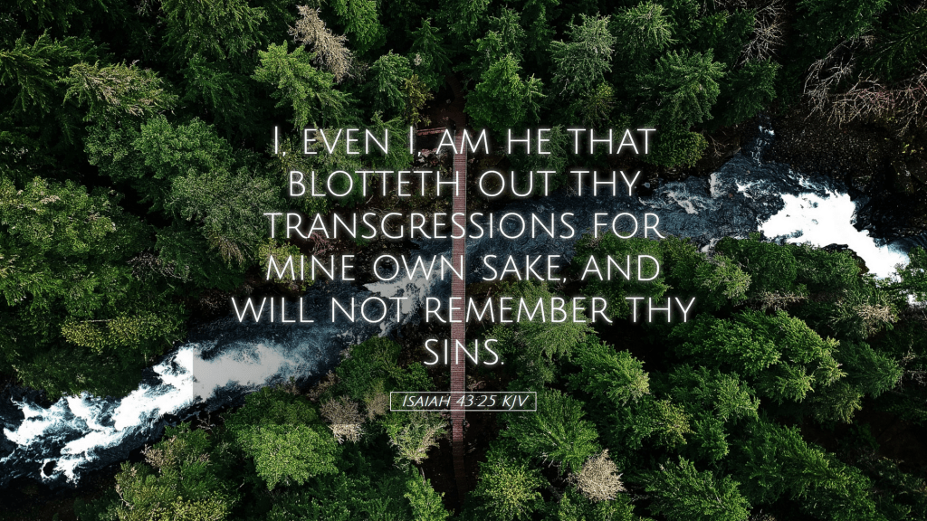 v.25 I, even I, am he that blotteth out thy transgressions for mine own sake, and will not remember thy sins.