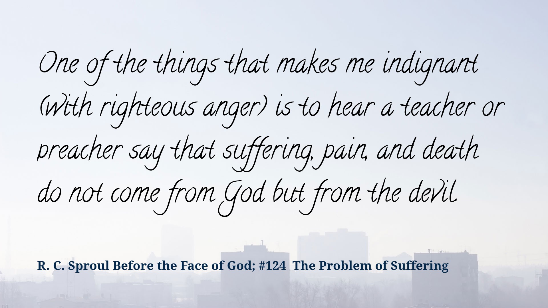Three (3) topics within today’s quote need further unpacking. They are Suffering, and the Author of Suffering, and Righteous Anger.